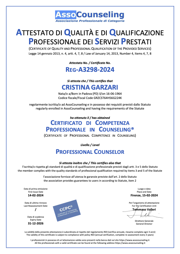Iscrizione all'associazione di categoria AssoCounseling A3298-2024